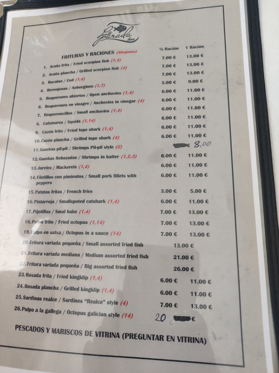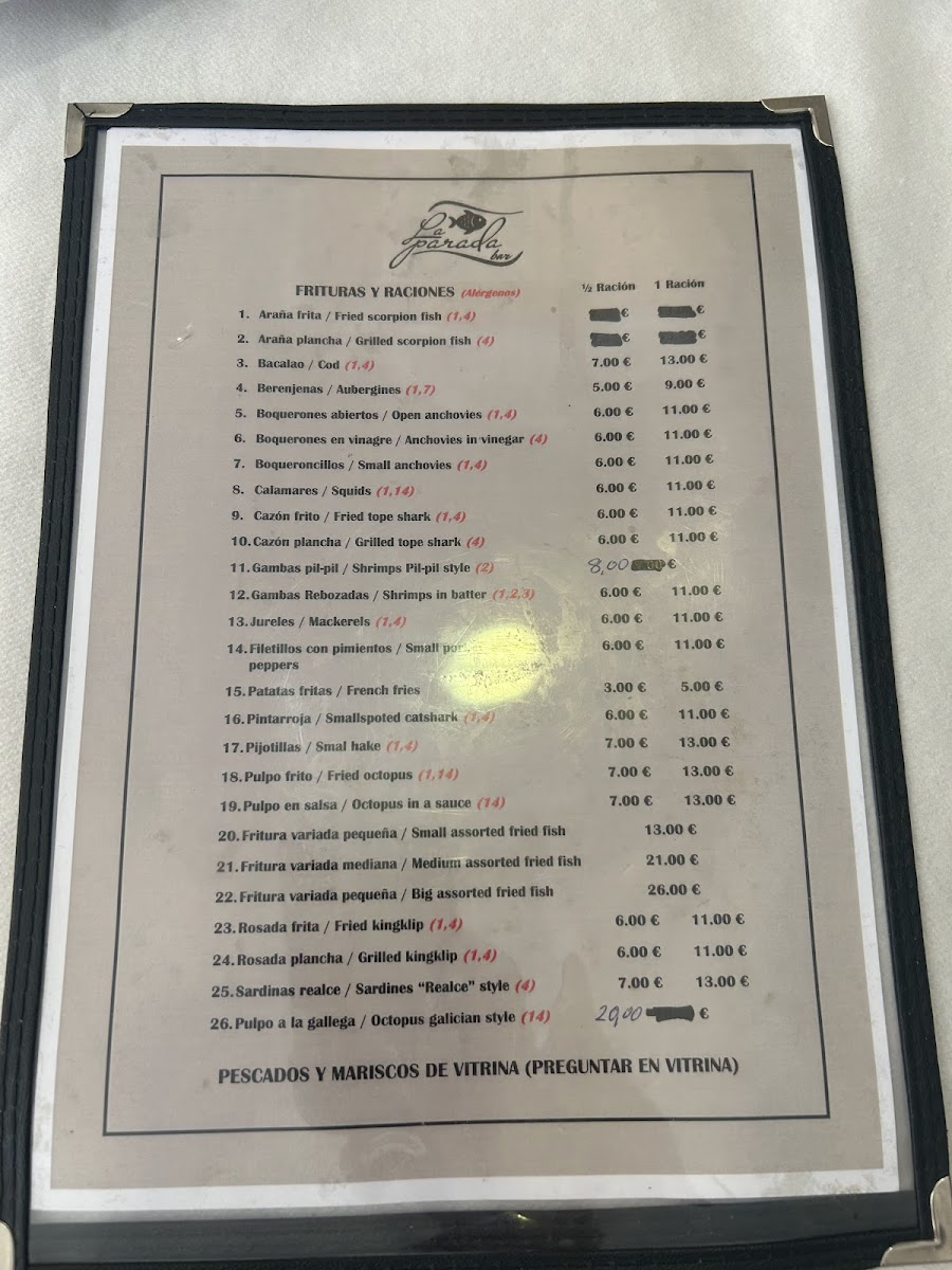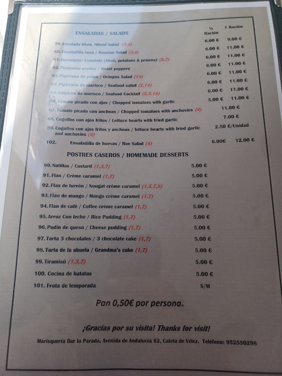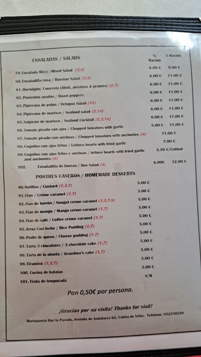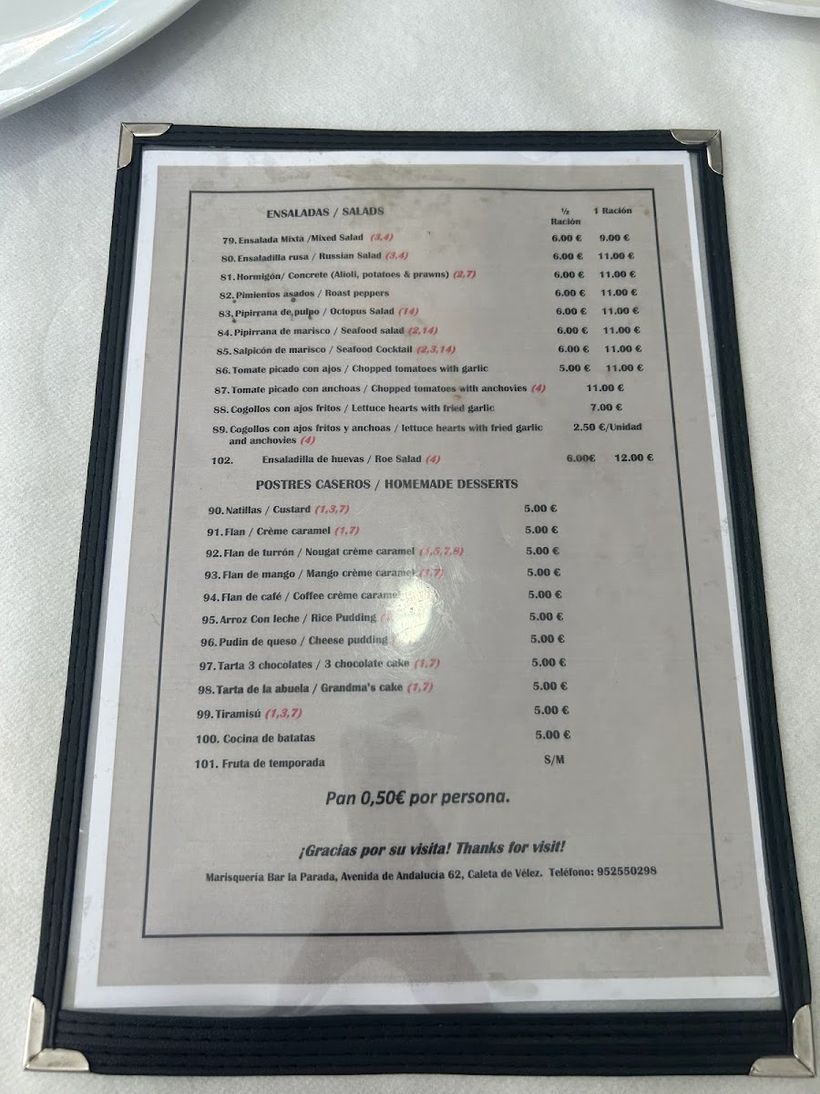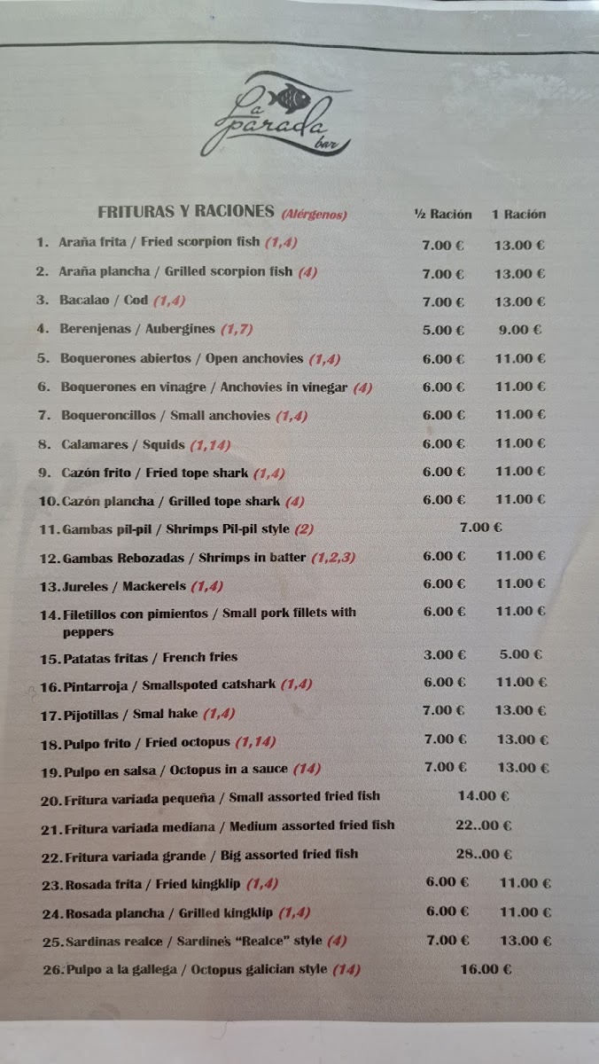 At Marisquería Bar La Parada, you'll discover the freshest seafood, captured straight from the Mediterranean waters. Located in the heart of Caleta de Vélez, this local gem serves up an authentic taste of the coast, where every dish is crafted with the highest quality ingredients. The Marisquería Bar La Parada Menu offers a wide variety of options, from succulent grilled fish to irresistible seafood platters. You can also enjoy traditional Spanish tapas that complement the flavors of the sea perfectly, all in a relaxed, welcoming atmosphere. Whether you're in the mood for something light or looking to indulge in a full feast, there’s something for every palate.